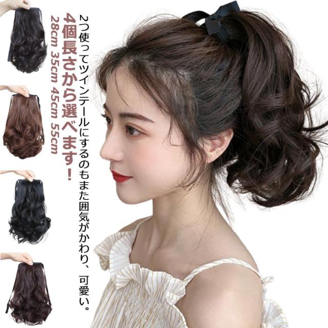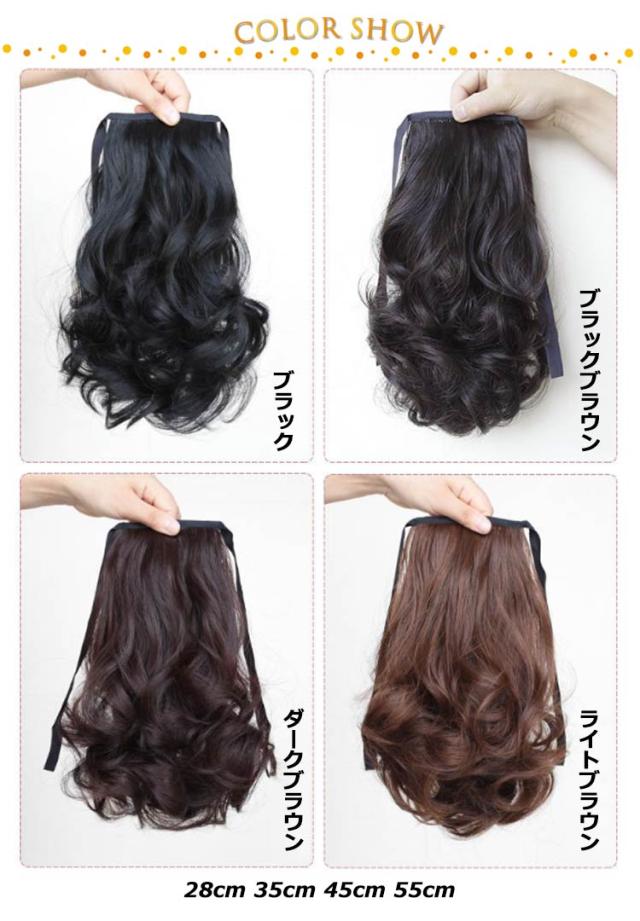 全4色 ポニーテール ウィッグ 自然 部分ウィッグ カール エクステ つけ毛 28cm 35cm 45cm 55cm ひもタイプ かつら ウイッグ 和装ウィッグ 着物ウィッグ ナチュラル ウェーブ 浴衣 襟足 コスプレ 結婚式 七五三
