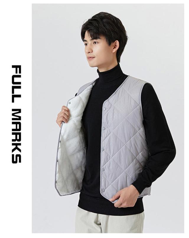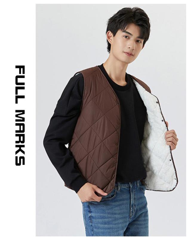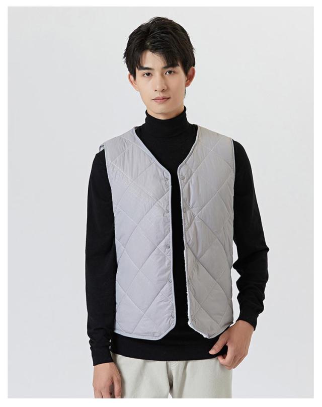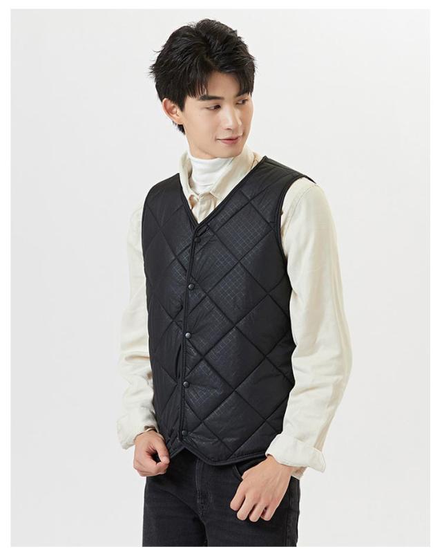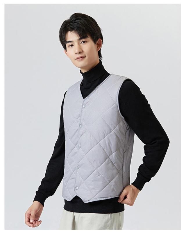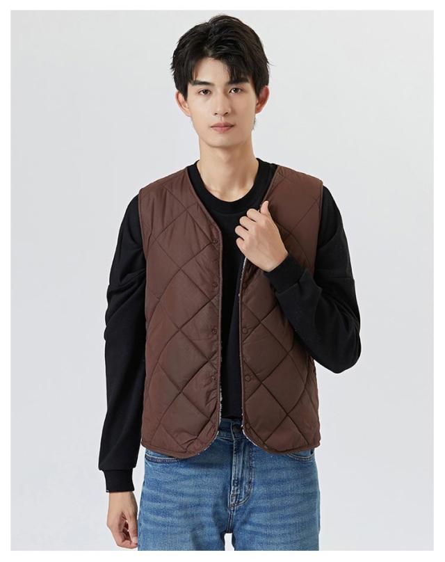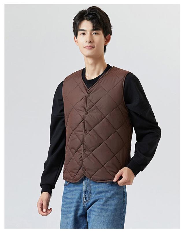 裏起毛 ベスト メンズ 前開き Vネック 中綿 キルティング フロントボタン ノースリーブ 袖なし 保温ベスト トップス インナー レイヤード 重ね着 秋 冬