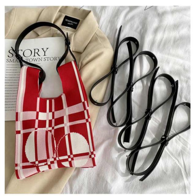| マルチに使えるストラップショルダー。 お手持ちのバッグにもお使い頂けます。 取り付けると両手楽々♪ 長さ調整可能! 取り外せ可能なので、アレンジ自由自在! ※ニットバッグは別売りとなります。 | |