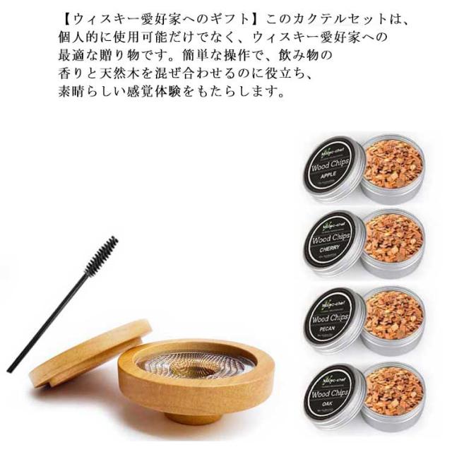 カクテルスモーカー 燻製器 家庭用 グラストップスモーカー スモークヘッド燻製器 8種類のウッドチップ付き ウィスキースモーカーキット 木製 カクテルスモーカーキット クリーニングブラシ付き