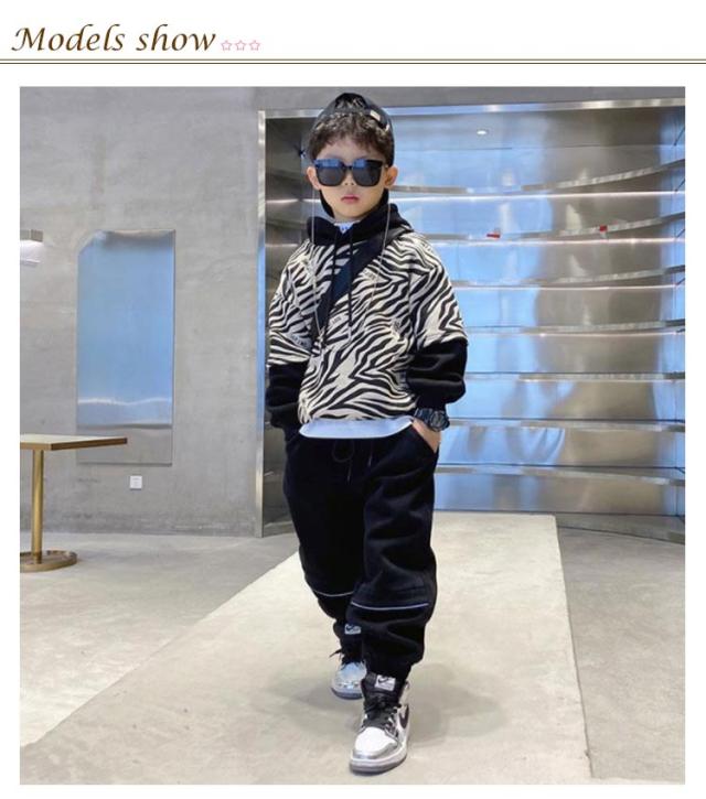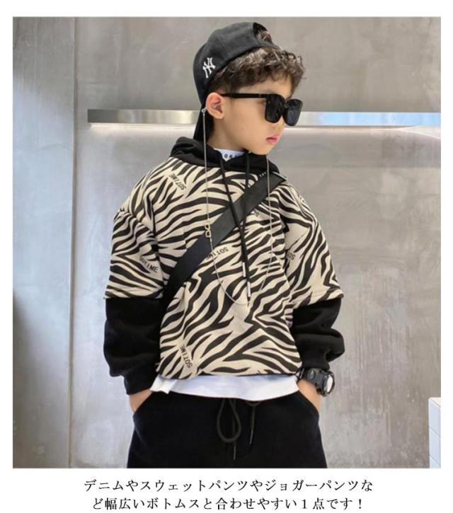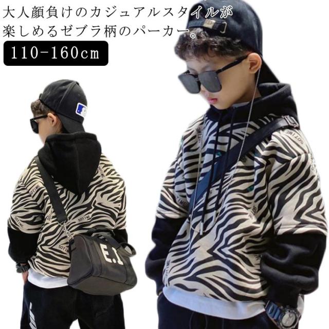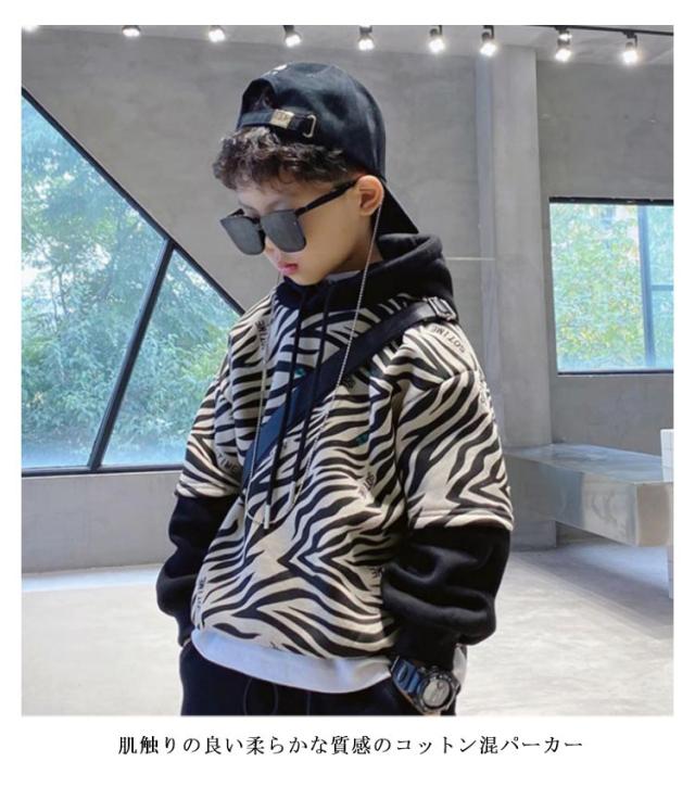 キッズ スウェット パーカー プルオーバー ゼブラ柄 総柄 フーディー 子供服 男の子 プルオーバーパーカー スウェットパーカー シマウマ柄 フード付き 裏起毛と薄手2タイプ 春 秋 冬 長袖 トップス 韓国 子ども服 ストリート おしゃれ 【送無】