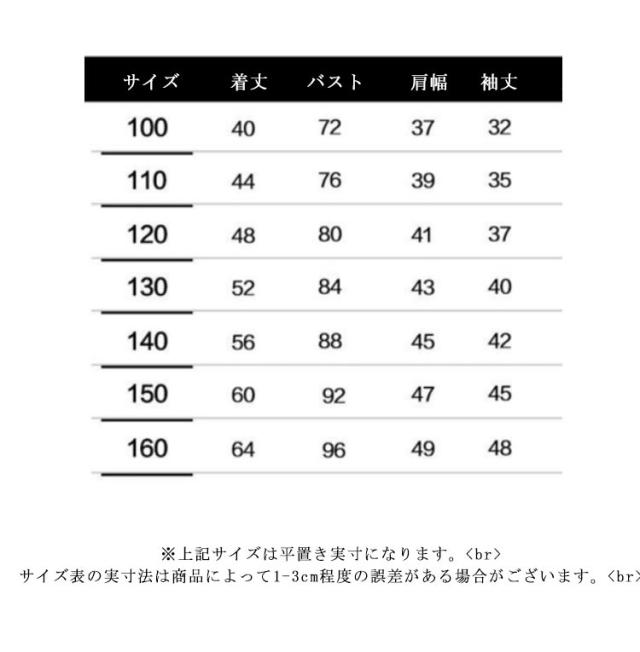 | サイズについての説明 | 110 120 130 140 150 160 |