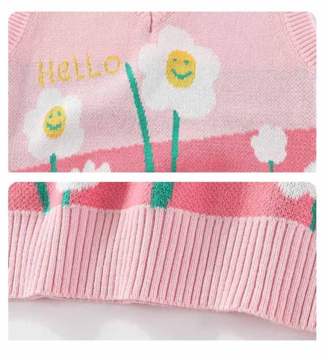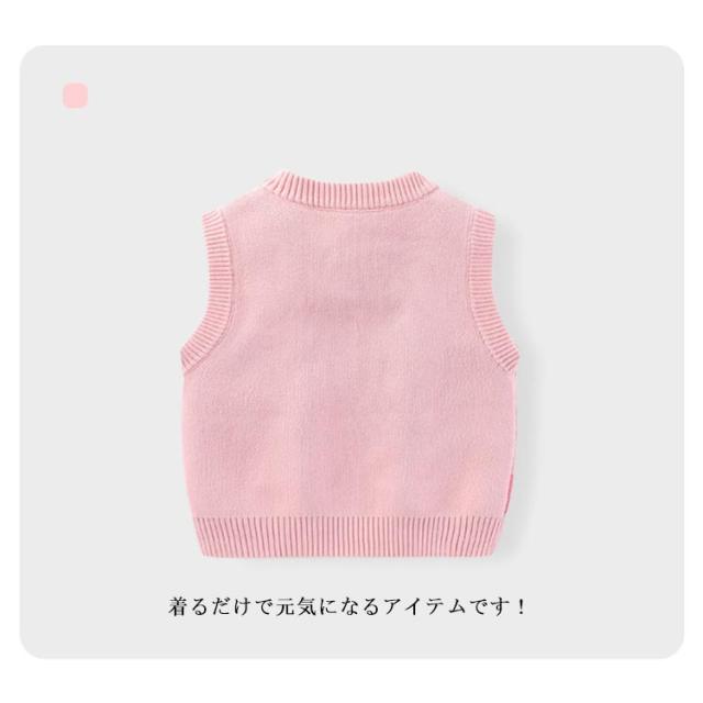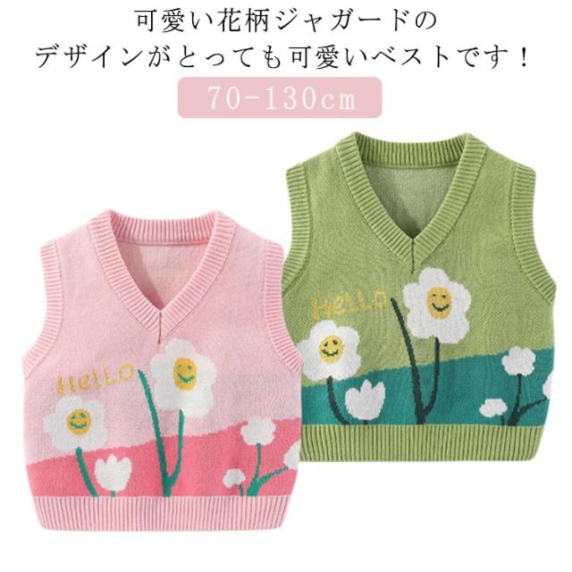 ニットベスト 子供服 花柄 ジャガード ニット ベスト Vネック プルオーバー ベビー服 赤ちゃん 女の子 女児 通園 通学 春 秋 冬 綿 コットン キッズ ニット トップス かわいい 防寒 保温 あたっか 70 80 90 100 110 120 130 140
