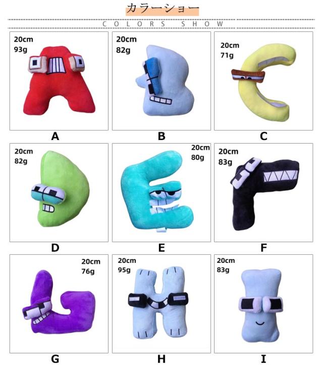 | 人気のゲームから派生した漫画の面白い文字のぬいぐるみ。 内層はPP綿で弾力性があり、ふわふわな手触りがたまらない! 子供が26文字のアルファベットを楽しく勉強できるように助けてくれます。 ベッドサイドのソファーに置いても可愛い装飾になります。 家族・パーティー・人形の壁飾りとして、ひどい雰囲気を演出できます。 | |