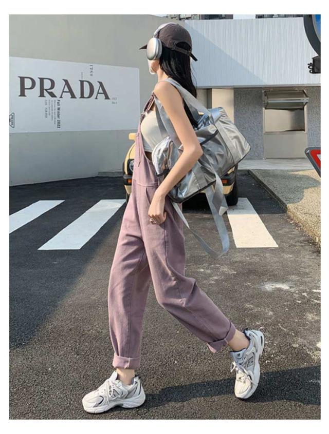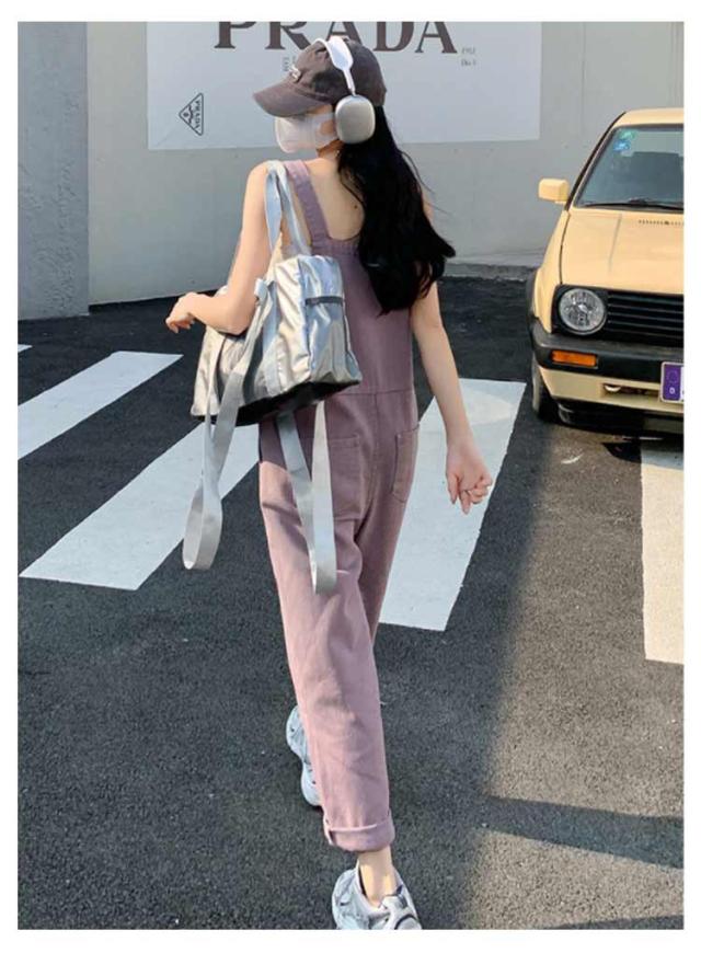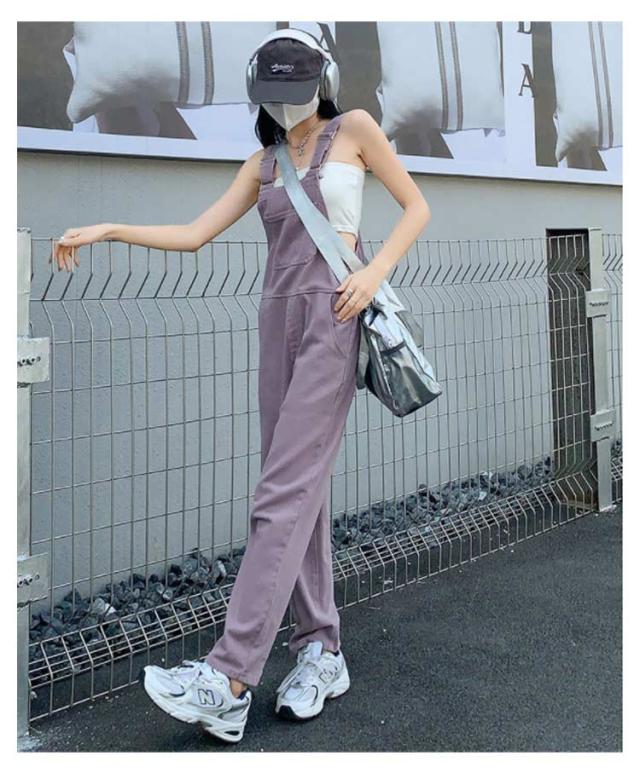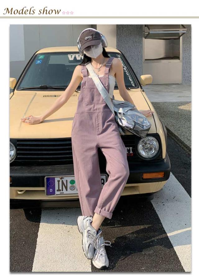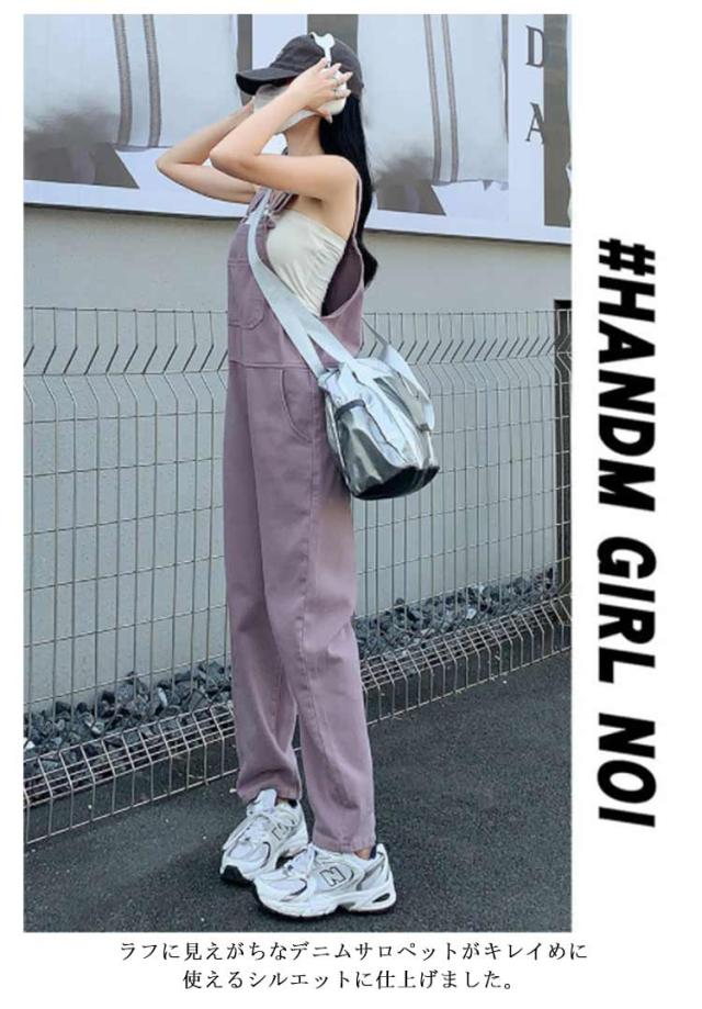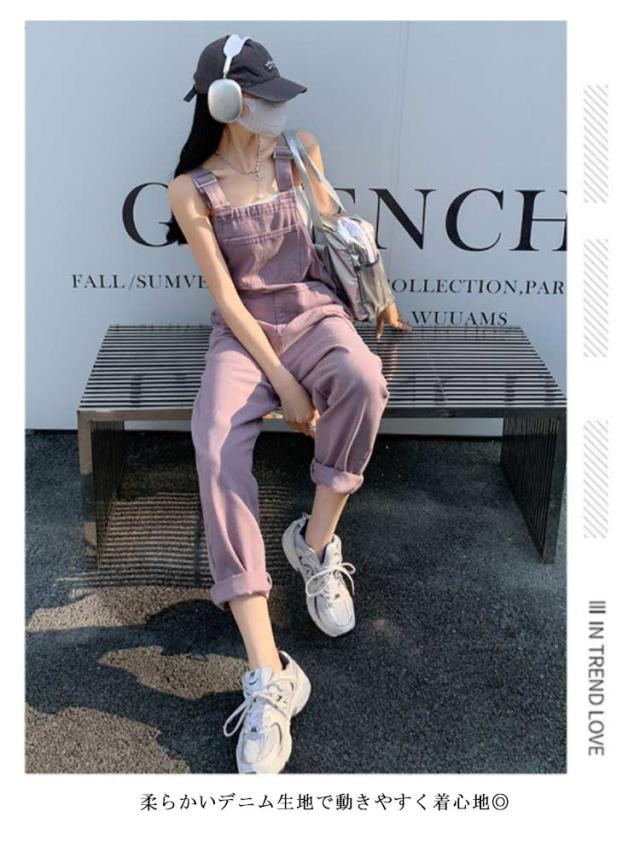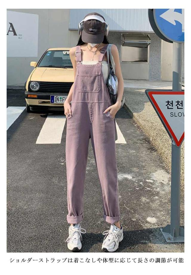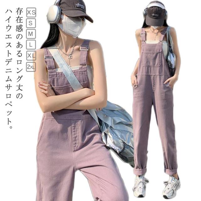 デニム サロペット パンツ レディース オーバーオール ツイル デニムパンツ ワイド ロングパンツ 長ズボン ハイウエスト 春 秋 冬 ボトムス デニム オールインワン 大人 可愛い カジュアル 綿 コットン ピンク パープル 無地 シンプル 【送無】