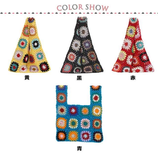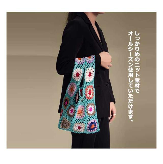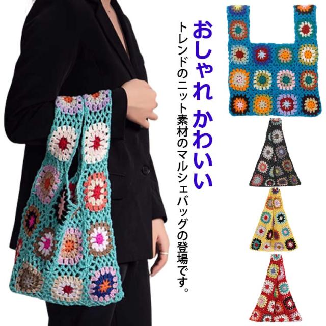 ニットバッグ トートバッグ レディース ハンドバッグ バッグ ニット サブバック ミニバッグ ミニトートバッグ 柄 クラッチバッグ エコバッグ クロシェ編み かぎ針 編み かばん 鞄 おしゃれ かわいい 韓国