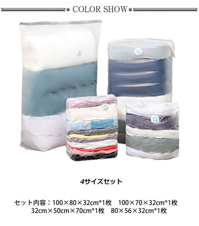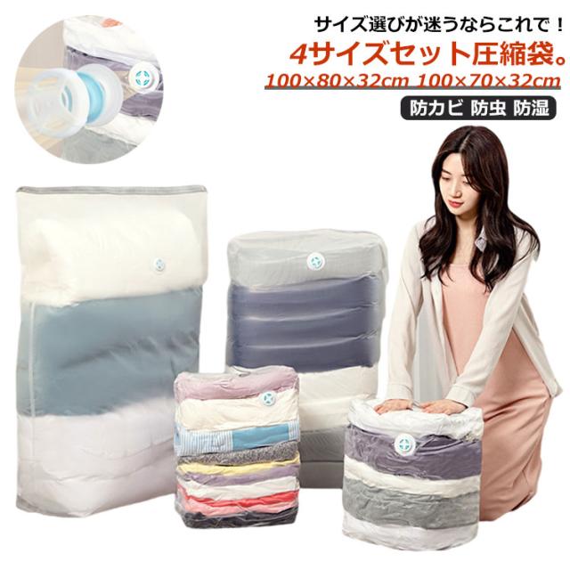 圧縮袋 立体 衣類 布団 ふとん圧縮袋 4枚(サイズ)セット 特大サイズ 100×80×32cm 100×70×32cm 立体圧縮袋 衣類圧縮袋 ポンプ不要 押すだけ 圧縮ボックス 寝具 ぬいぐるみ 衣替え カビ対策