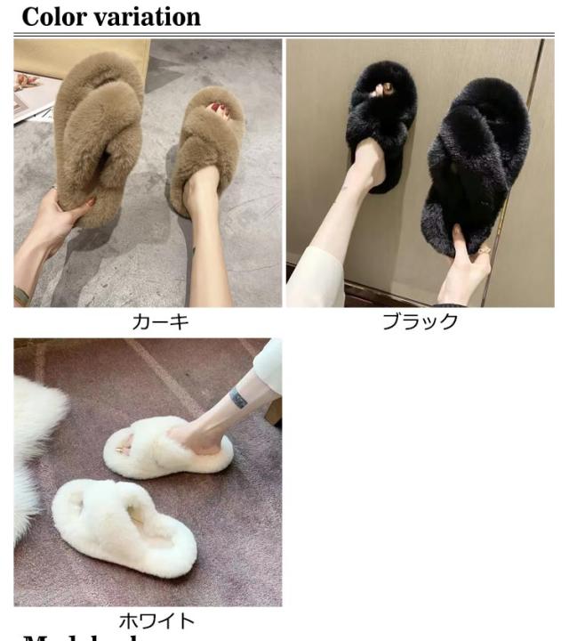 | たっぷりのファーで足裏あったか 底はゴム製のソールだから、 床の冷えも響かず快適にお過ごしいただけます オープントゥデザインで蒸れにくいのもポイント | |