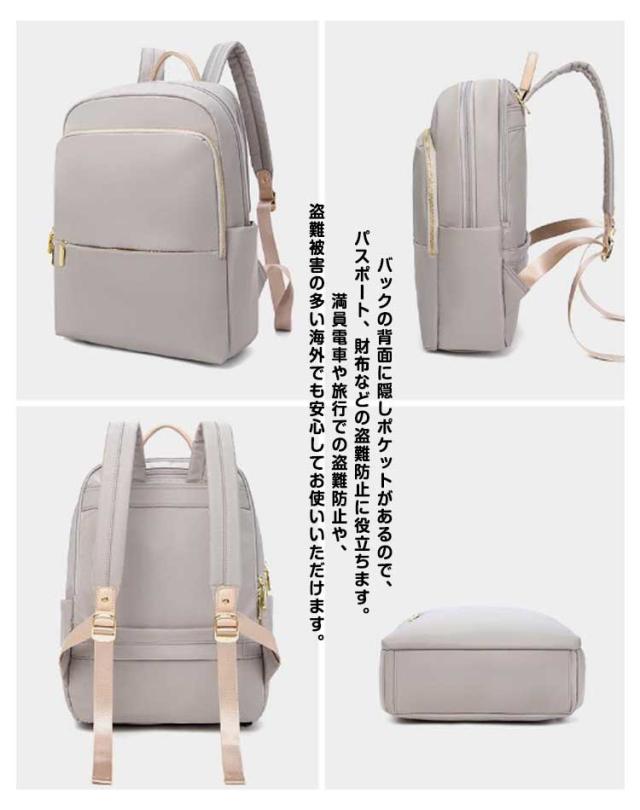 | 通勤や通学などのデイリーはもちろん、旅行用のバッグとしてもオススメ! スリムなデザインに見えて、一泊分の荷物と14インチまでのノートPCが入る大容量。A4サイズの書類や雑誌、折り畳み傘、ペットボトル、財布、衣類等普段持ち歩く荷物も楽に収納できます。 フロント部分、両サイドにはそれぞれポケットがあります。携帯電話、、財布、iPad、折り畳み傘などサッと取り出して使いたいアイテムを収納するとGOOD! バックの背面に隠しポケットがあるので、パスポート、財布などの盗難防止に役立ちます。満員電車や旅行での盗難防止や、盗難被害の多い海外でも安心してお使いいただけます。 パソコン専用の収納ポケットは、通勤や通学の際の満員電車などでも、大切なPCをしっかり保護します。 高品質オックスフォード素材に撥水・防汚加工。水を弾くのに加え、汚れが付きにくいので、突然の雨やうっかりこぼしたコーヒーもサッと一拭きで元通り。 幅広ベルトとクッション性に優れた生地で肩や背中への負担を軽減。スーツケースに引っ掛けるキャリーオンベルトを搭載しており、出張、旅行での移動ストレスを解消! シンプルで無駄のない洗練されたデザインとカラーバリエーションが魅力! 年齢を問わず、普段使い、ビジネス、通勤、通学はもちろん旅行バッグとしてなどシーンを選ばずに使用できます。 | |