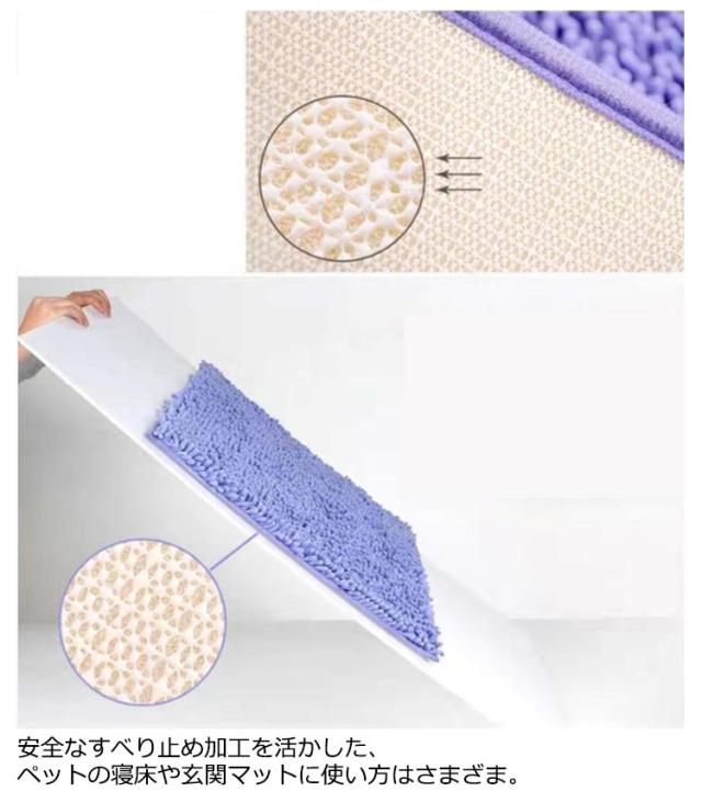 | 吸水性を活かして、トイレやキッチンなどの水回りのマットに 触り心地抜群のふかふか起毛を活かした子供の遊び場のマットやデスク下の冷える場所に 安全なすべり止め加工を活かした、ペットの寝床や玄関マットに使い方はさまざま | |