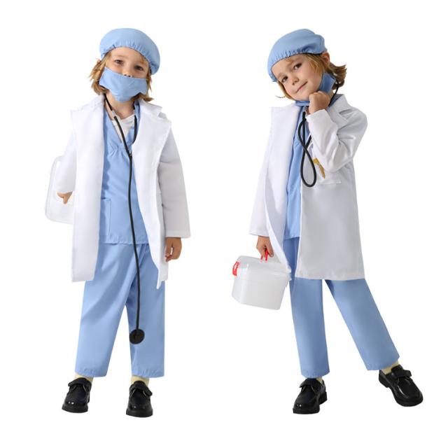 お得な6点セット!白衣 医者 ハロウィン 衣装 子供 キッズ用 お医者さん衣装セット 送料無料 聴診器付き コスプレ ハロウィン 男の子 女の子 コスチューム子供 手術服 コスプレ キッズ 男の子ナース 仮装 ドクター 子供用 ガールズ コスプレ衣装 イベント
