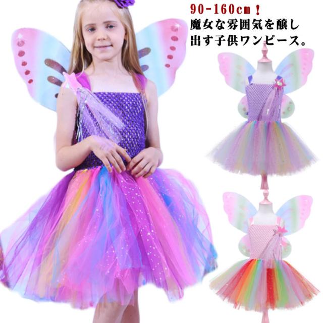 送料無料 ハロウィン コスプレ 衣装 妖精 女の子 ワンピース ベビー 子供服 キッズ 仮装 魔法使い お姫様ドレス プレゼント 誕生日 パーティー 演出 舞台服 文化祭 可愛い お遊戯会 イベント服 写真撮影 90 100 120 140 160cm