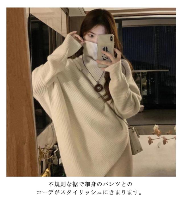 セーター プルオーバー ハイネック ポンチョ風 ニットトップス ドルマンスリーブ レディース ゆったり 体型カバー 暖かい 春秋 普段着 カジュアル 韓国ファション お洒落 キレイめ 送料無料