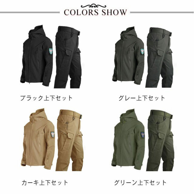 | 色 | ブラック上下セット グレー上下セット カーキ上下セット グリーン上下セット |