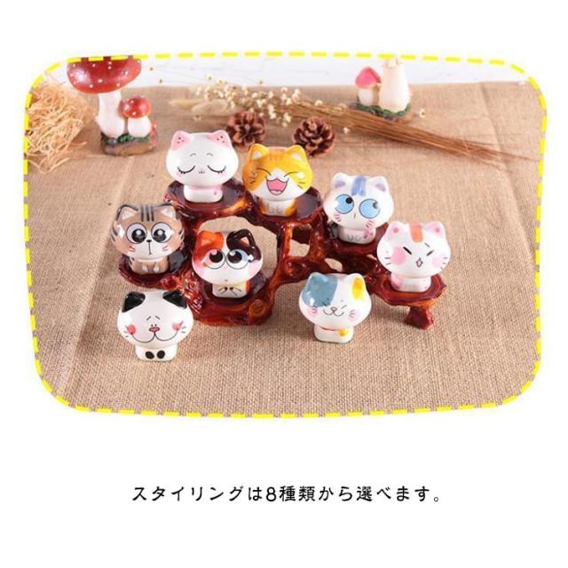 | とてもかわいい猫の置物です。 スタイリングは8種類から選べます。 セラミックス素材を使用しており、見た目はなめらかで、手触りも繊細です。 家庭、オフィス、車中など多くのシーンで飾ることができます。 | |