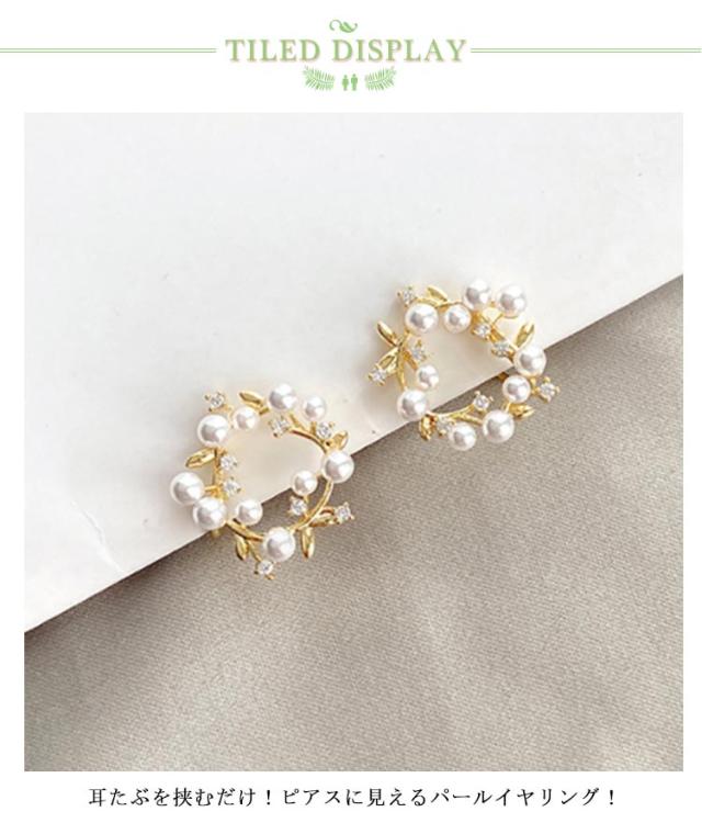 花輪 パール イヤリング 小粒 パール キラキラ レディース アクセサリー ジルコニア ビジュー イヤリング ピアス見え 高見え 金属アレルギー対応 ノンホール ピアス 痛くない イヤリング 両耳用 小顔効果 イヤーカフ イヤーカフス 結婚式 パーティー エレガント 送料無料