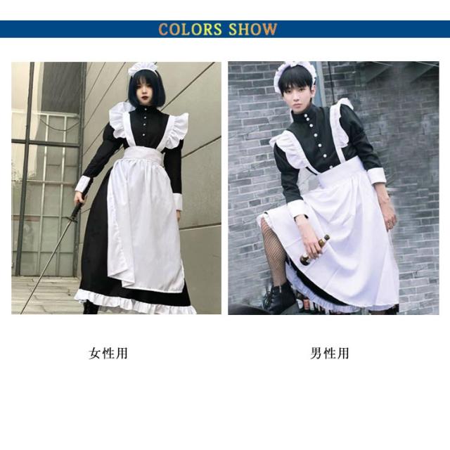 | 男性も着用できる大きいメンズサイズありのメイド服♪ セット内容:ワンピース+エプロン+髪飾り+リボン 英国風クラシックスタイルのロングメイドドレス♪ ハロウィーン、パーティー、演劇、イベント、学園祭などいろんなシチュエーションに合う〜 コスプレが初めての方も挑戦しやすい衣装です。 | |