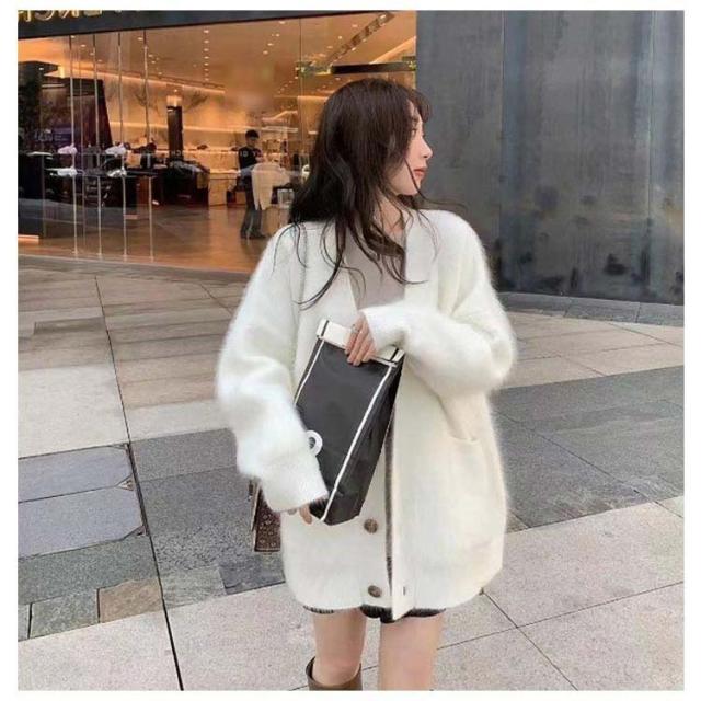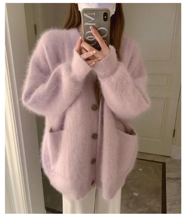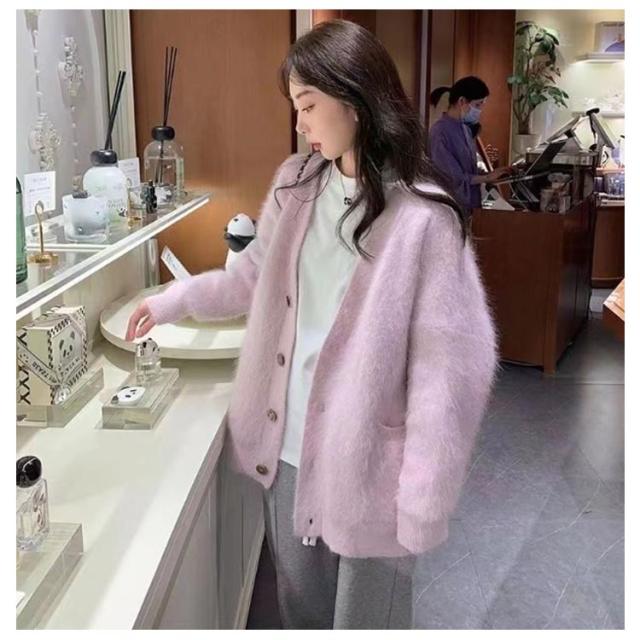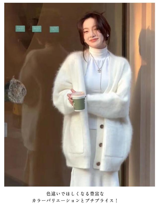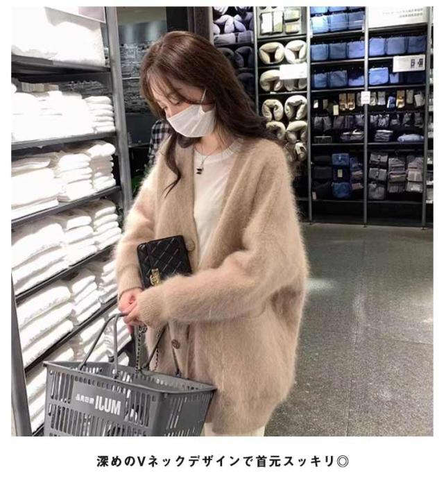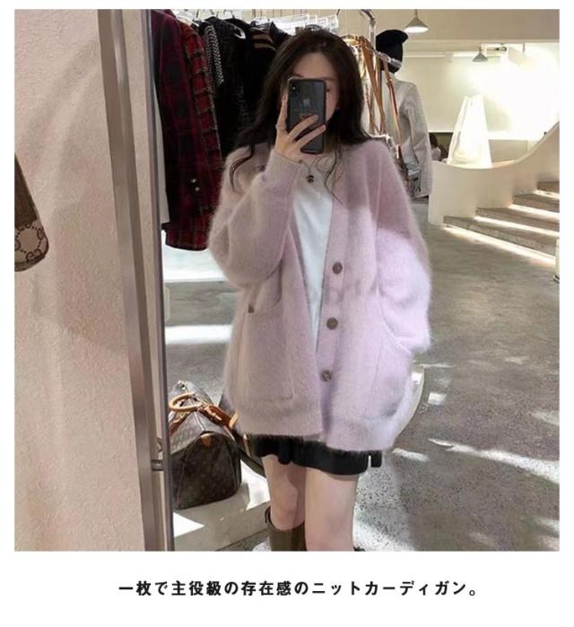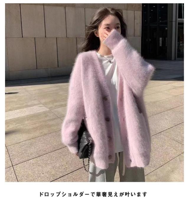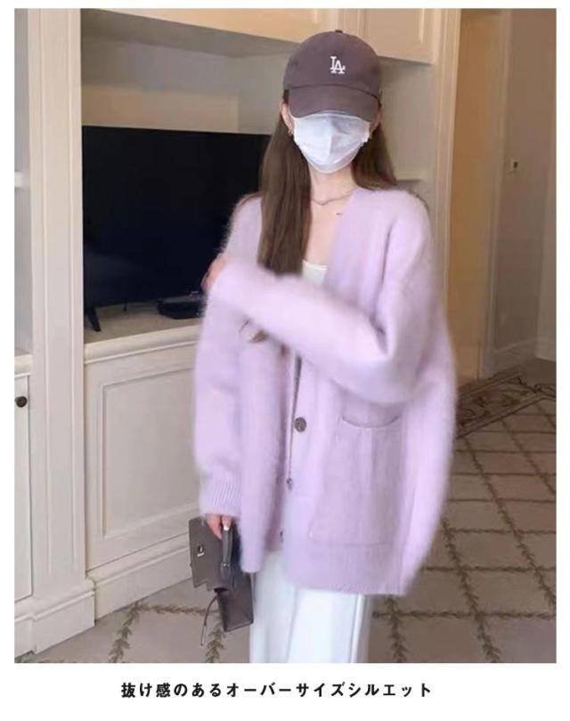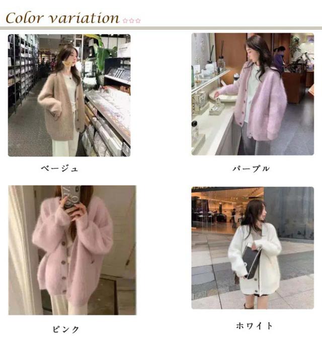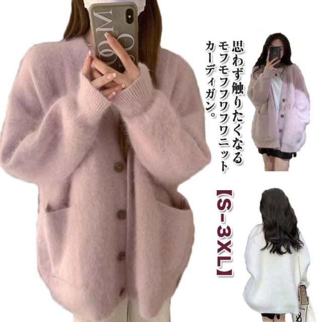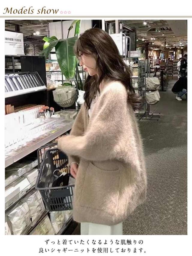 シャギー カーディガン 秋冬 レディース ニットカーディガン ふわふわ モコモコ アウター 秋服 冬服 羽織り 深め Vネック ポケット付き 厚手 あたっか 防寒 きれいめ 韓国 ファッション 大人 可愛い 20代 30代 40代 50代 ホワイト ベージュ パープル ピンク