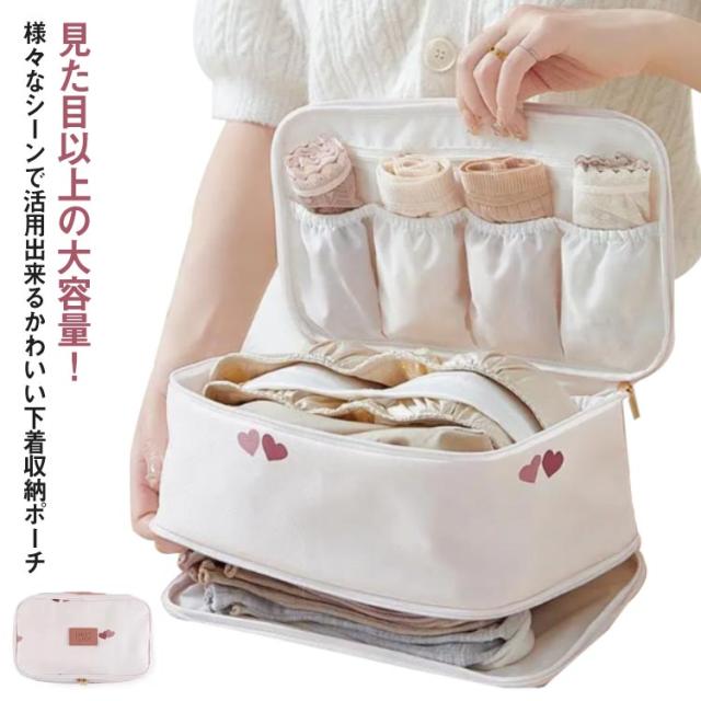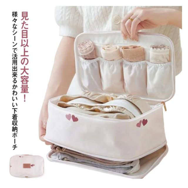 下着 収納 下着ポーチ トラベルポーチ 下着 収納ポーチ ランジェリー ポーチ ケース 大容量 便利 旅行 出張 肌着 仕切り ランジェリーケース かわいい 撥水 軽量 多機能 小物収納 送料無料
