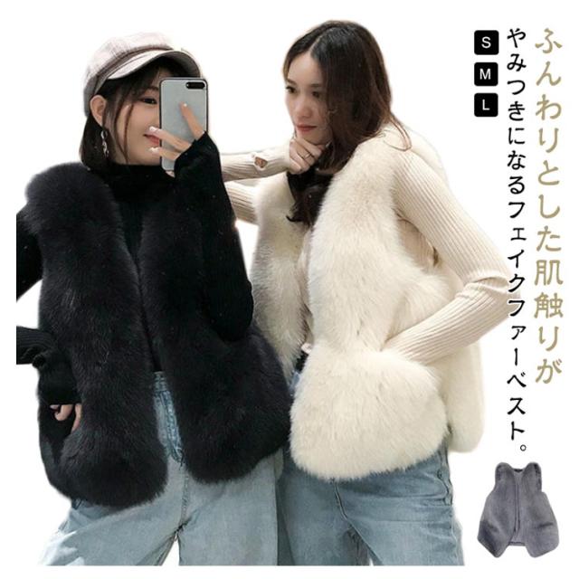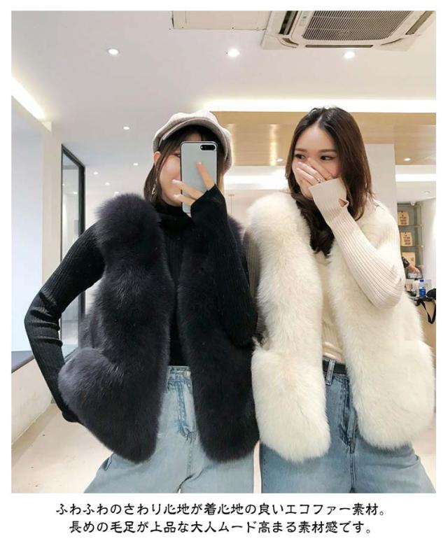 フェイクファー ベスト レディース ファーベスト ショート もこもこ ふわふわ 厚手 ノーカラー ファージャケット ノースリーブ ポケット付き 冬 秋 アウター 羽織り 韓国 きれいめ 大人 可愛い あたっか 防寒 保温 20代 30代 40代 50代