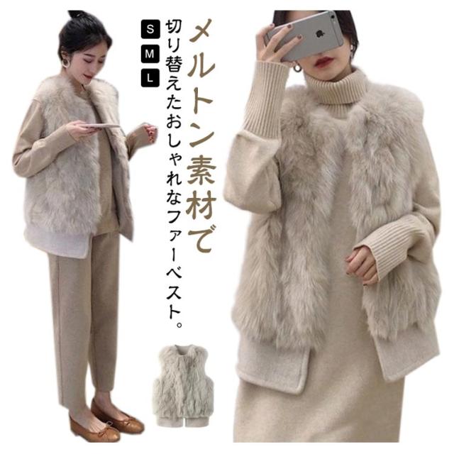 ベスト ファーベスト ショート丈 クルーネック レディース フェイクファー ベスト ジレ もこもこ ふわふわ ボリューム感 ファージャケット ノーカラー ノースリーブ 韓国 冬 秋 アウター 羽織り ミドル丈 レイヤード コーデ きれいめ 大人 可愛い