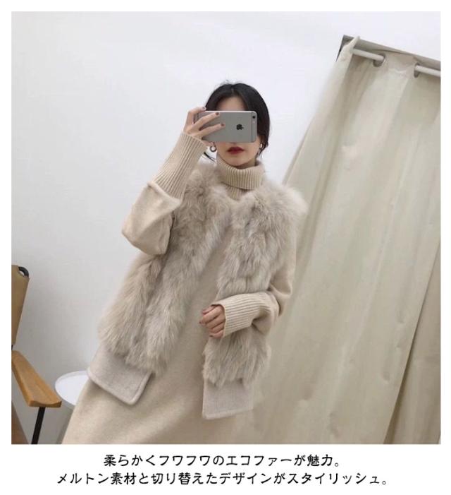 | メルトン素材で切り替えたおしゃれなファーベスト。 柔らかくフワフワのエコファーが魅力。メルトン素材と切り替えたデザインがスタイリッシュ。 羽織るだけで普段のコーデをぐっと格上げしてくれるトレンド感の高いアイテムです。 スカートやパンツ、ワンピースやドレス、どんなアイテムにも合わせやすい丈感。 アームホールは大きく、ゆとりあるサイズ感なので動きやすく車の運転にも最適です。 軽量で暖かく、シワにもなりずらい、エレガントにもカジュアルにも活躍してくれるエイミーおすすめの1枚です。 | |