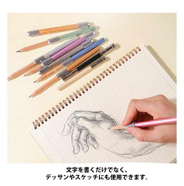 | 両端に留め具のついた鉛筆ホルダーです。 【6色6本セット】 本体左右に鉛筆を挿し込んで固定できるので、鉛筆2本を1つにまとめられます。 左右のグリップにはすべり止め加工が施されているため、しっかり握って快適に文字を書けます。 軽量なアルミ製で持ちやすく、文字を書いても疲れにくいのもポイント。文字を書くだけでなく、デッサンやスケッチにも使用できます。 学生の勉強用としてだけでなく、ビジネスでの使用にも適しています。 | |