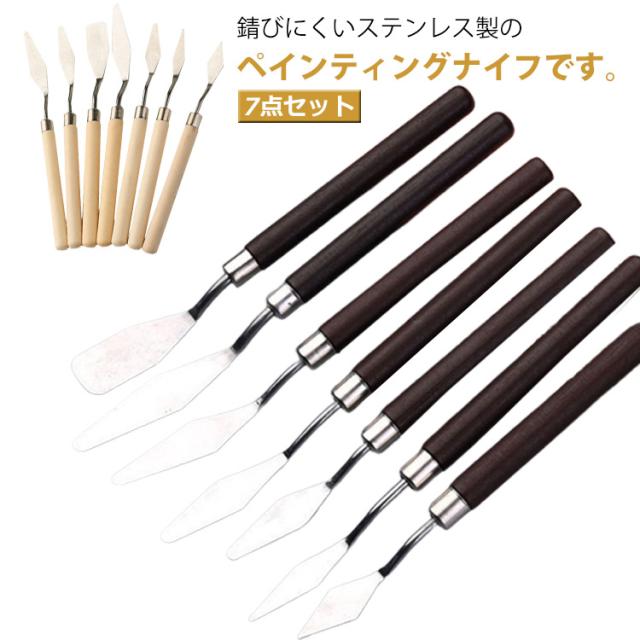 ペインティングナイフ 7点セット アートナイフ ステンレス製 油絵 ナイフ パレットナイフ 木製ハンドル アクリル ペイント 絵画 美術用品 画材 道具 陶芸用 フィギュア 塗料 プレゼント 送料無料
