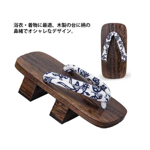 | 伝統的な形で昔ながらの雰囲気を楽しめる二枚歯下駄です。 味わい深い木の感触たっぷりな軽くて心地の良い下駄です。 歯裏はゴム底になっているので、滑りにくいのが特徴です。 鼻緒部分は、履けば履くほど足になじんできますので痛くありません。厚みもありしっかりとした作りなので丈夫です。 浴衣・着物に最適、木製の台に柄の鼻緒でオシャレなデザイン。作務衣や浴衣、着物はもちろん、普段のジーンズにピッタリ。 | |