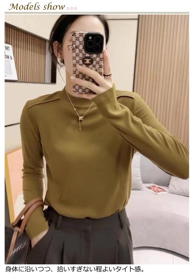 無地 tシャツ インナー ロンt カットソー 長袖 送料無料 秋 冬 トップス 長袖カットソー クールネック 大きいサイズ タイト ストレッチ カジュアル リブ Tシャツ レディース シンプル オフィス きれいめ プルオーバー