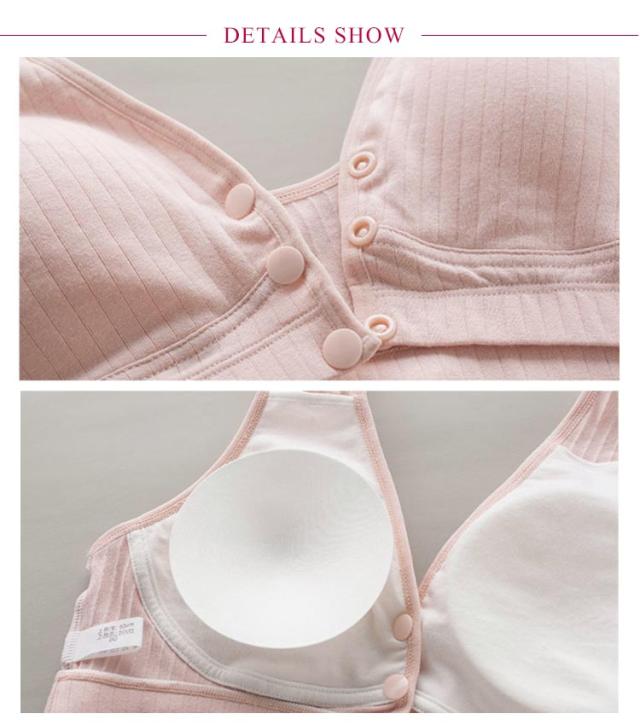 | 前開きできる垂れ防止授乳ブラ♪ お肌に優しいコットン素材を使用した! フロントのボタンを開ければすぐに授乳が出来る便利な商品です。 付け心地が抜群で産前から産後までおすすめのマタニティブラ♪ 取り外し可能なパッドが付いており、お手持ちのパッドなどにも取り換えるもOK! サイドが脇高になっているので、横の贅肉もスッキリ収納できます♪ | |
