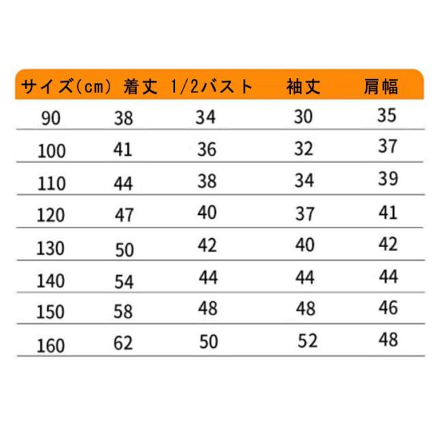 | サイズについての説明 | 90:目安身長85-95cm お勧め体重9-12.5kg 100:目安身長90-100cm お勧め体重10-17.5kg 110:目安身長100-110cm お勧め体重15-200kg 120:目安身長110-120cm お勧め体重17.5-22.5kg 130:目安身長120-130cm お勧め体重22.5-30kg 140:目安身長130-140cm お勧め体重27.5-35kg 150:目安身長140-150cm お勧め体重32.5-40kg 160:目安身長145-160cm お勧め体重37.5-47.5kg ※上記サイズは平置き実寸になります。 サイズ表の実寸法は商品によって1-3cm程度の誤差がある場合がございます。 |