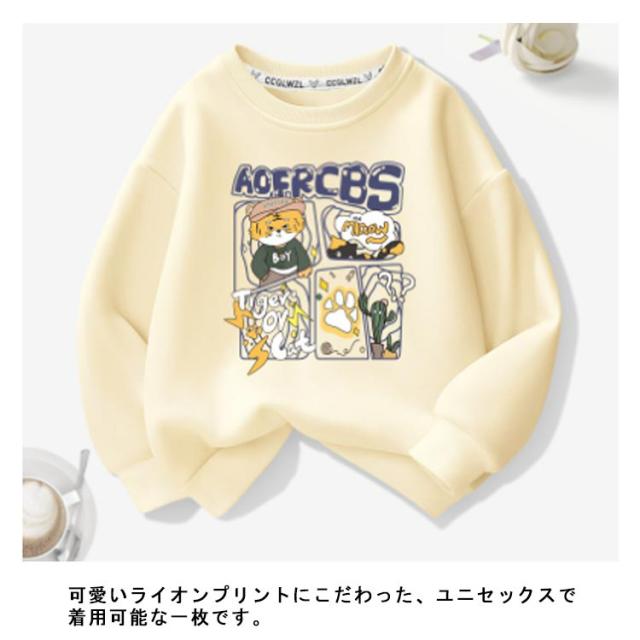 | 【90-160cm】 【裏地毛/裏毛なし 2タイプ選べる】 シンプルで着回し力抜群定番ロゴトレーナー。 程よく厚みがありながら、軽い着心地が魅力です。 ふっくら柔らかな裏起毛をかけた素材♪ 毛玉が出来にくいのも嬉しいポイント。 可愛いライオンプリントにこだわった、ユニセックスで着用可能な一枚です。 通園・通学にもぴったりなので、毎日着たくなるアイテムです。 | |