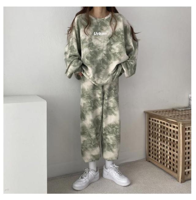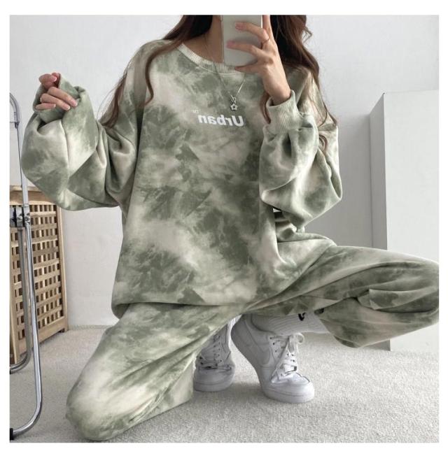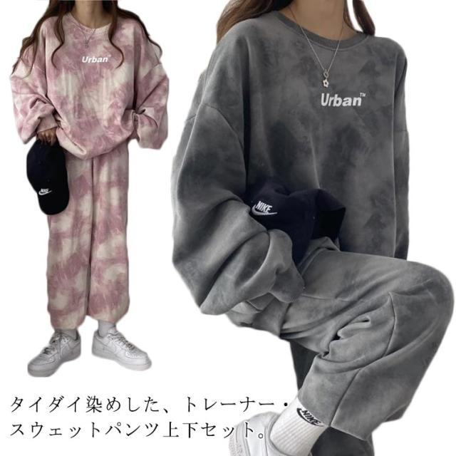 部屋着 タイダイ柄 ルームウェア 上下セット レディース 春 秋 冬 長袖 スウェットパンツ ロングパンツ トレーナー ナイトウェア 寝巻き スポーツウエア ゆったり ジャージ ビッグシルエット パジャマ ダンス衣装