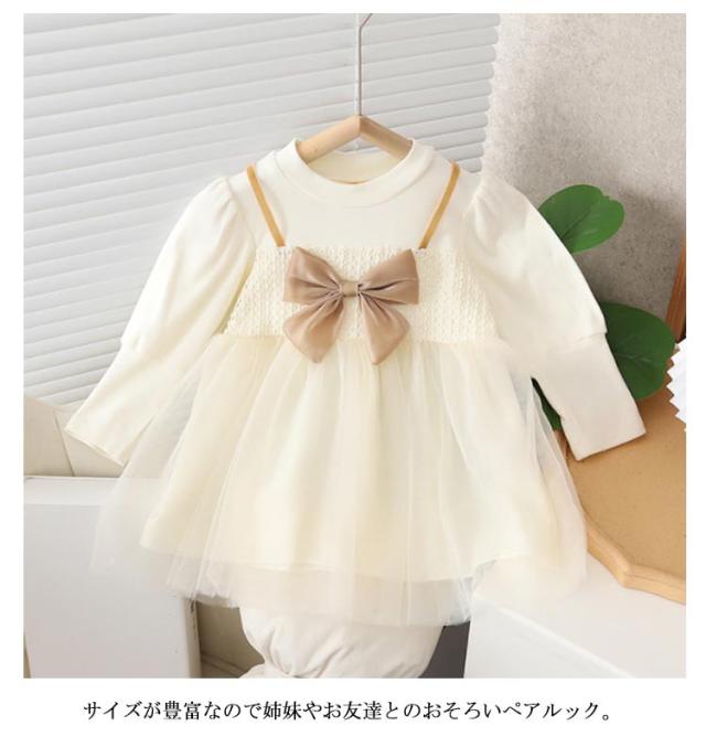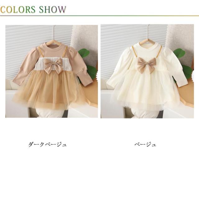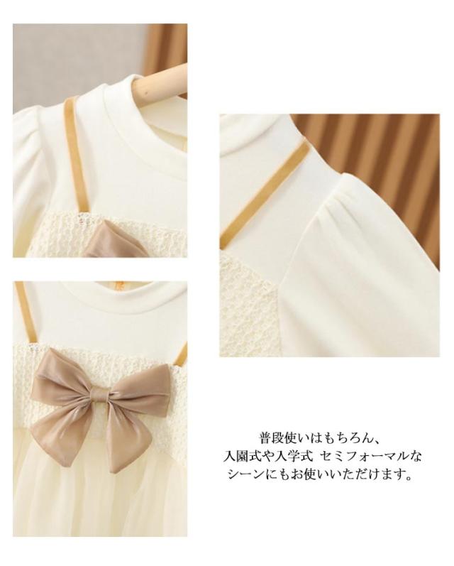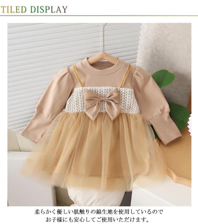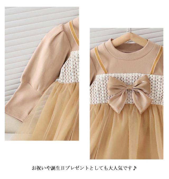 チュール ワンピース 子供服 キッズ 長袖 ドレス 春秋冬 女の子 子ども服 ベビー用 ドレス リボン 可愛い クルーネック チュールスカート 通園 通学 プレゼント 80 90 100 110