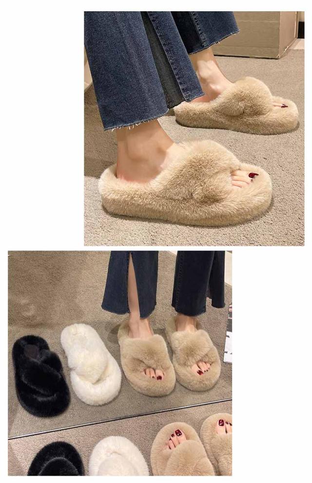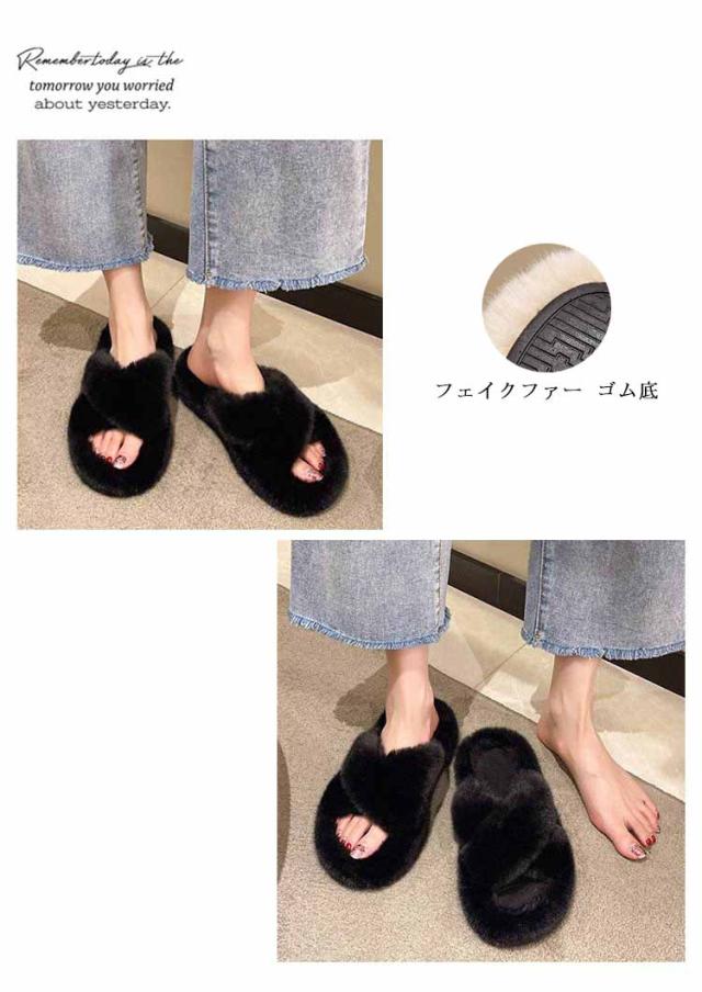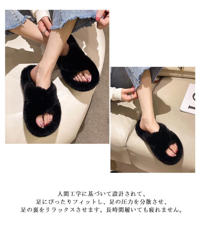 クロスサンダル 厚底 ファースリッパ レディース 厚底 もこもこ スリッパ ふわふわ 4cm クリスマス ルームシューズ 秋冬 ボア 来客用 ファーサンダル プレゼント ボアスリッパ 防寒 サンダル