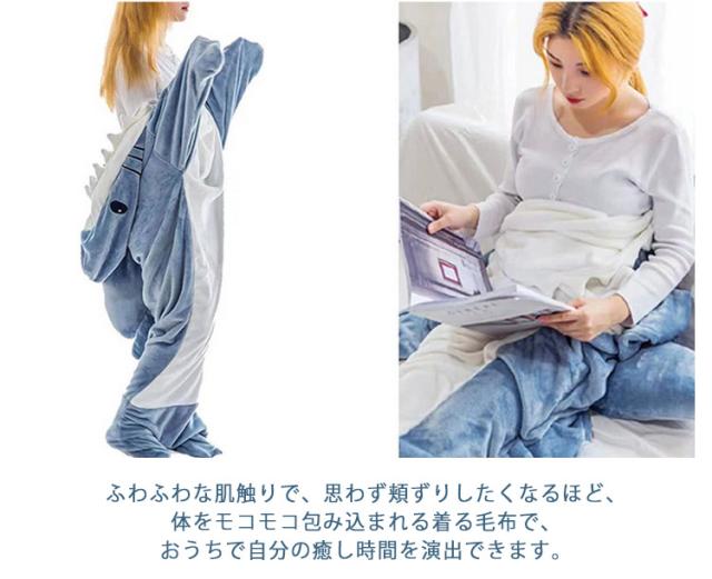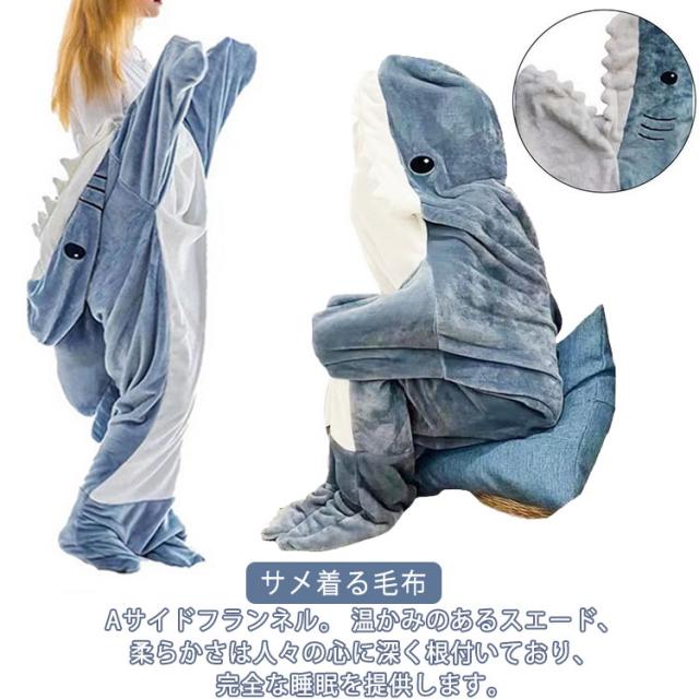 サメ寝袋 フランネル サメブランケット サメ着る毛布 きぐるみ パジャマ 大人用 子供用 寝袋 穿く毛布 着る毛布 かわいい 可愛い 防寒 お昼寝毛布 冷房対策 防寒グッズ 面白い プレゼント ハロウィン コスプレ衣装 パーティー 送料無料