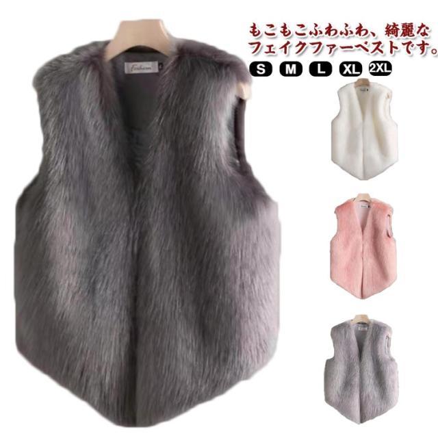 ファーベスト ベスト レディース 春 ジレ ファージャケット フェイクファー ファーコート 羽織り ロングベスト ジャケット 前開き ボア ベスト アウター ふわふわ もこもこ レイヤード 重ね着 秋冬 トップス ノースリーブ ボリューム感 おしゃれ 部屋着 送料無料