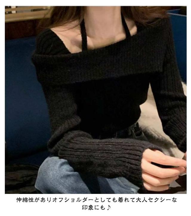 ニット セーター トップス レディース リブニット トップス オフショル オフショルダー 秋 春 長袖 肩出し 肩見せ 着痩せ お出かけ きれいめ カジュアル 無地 シンプル 韓国 大人 可愛い かわいい おしゃれ