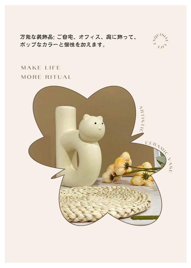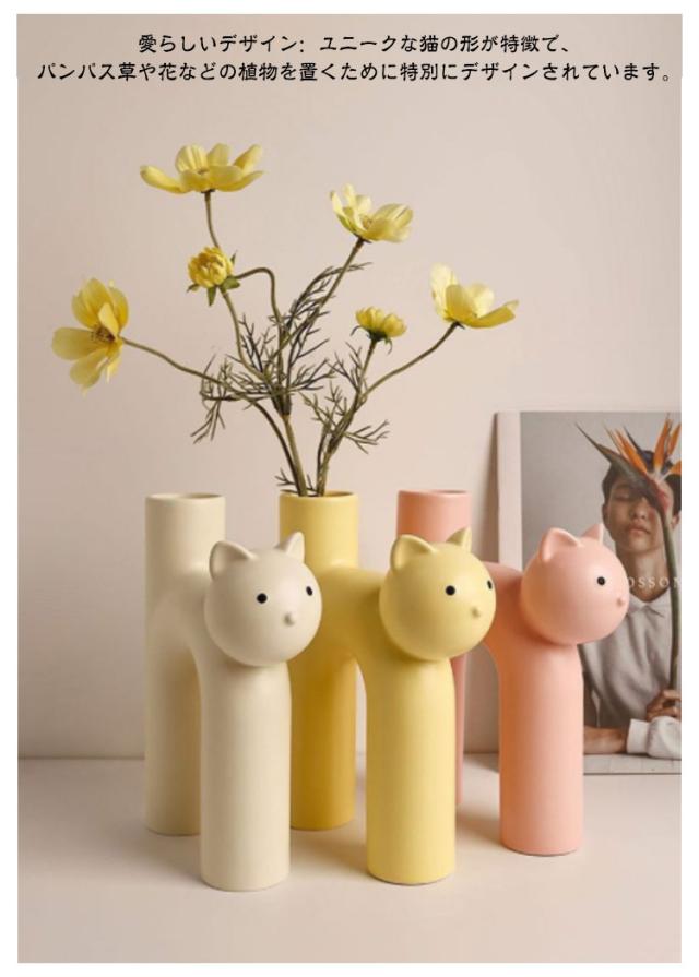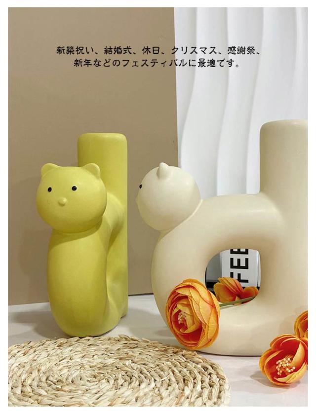 猫 花瓶 フラワーベース 猫の形 陶器装飾 家庭 リビングルーム用 テーブル 装飾花瓶 シンプル クリエイティブ 植物 水耕栽培 自宅 リビング 玄関 お引っ越し祝い プレゼント おしゃれ かわいい インテリア お部屋 お庭 オフィス