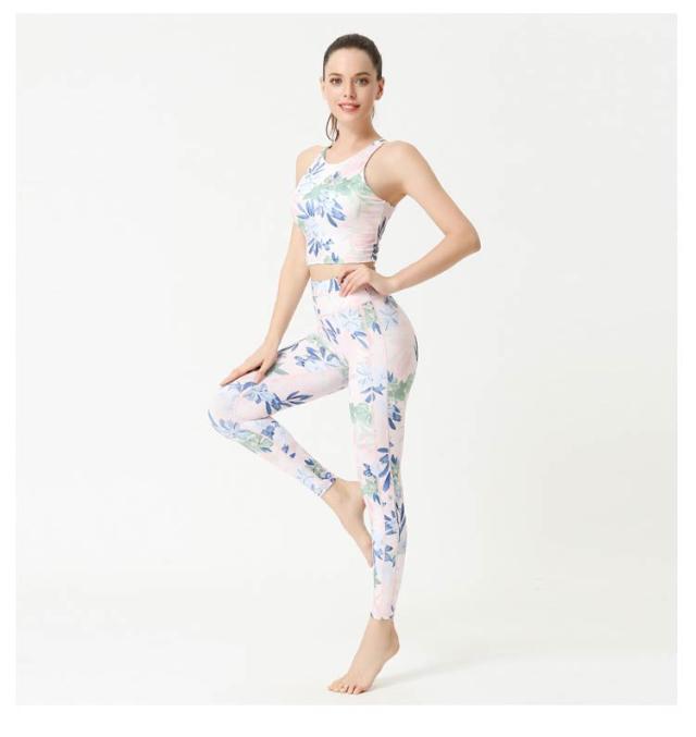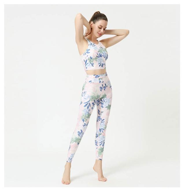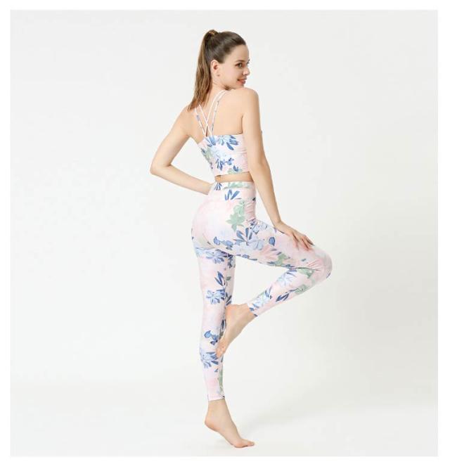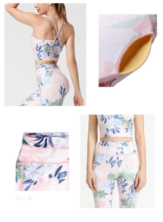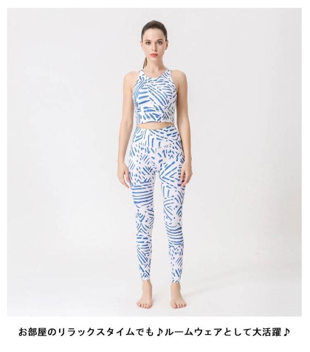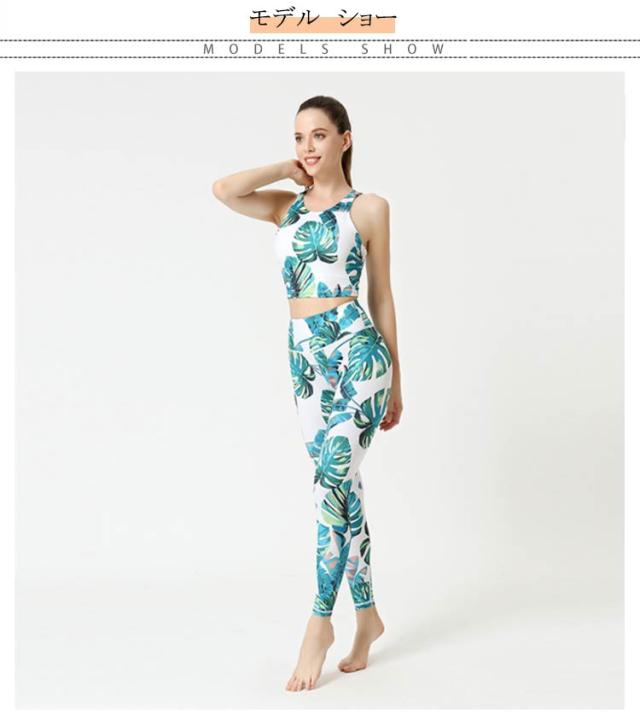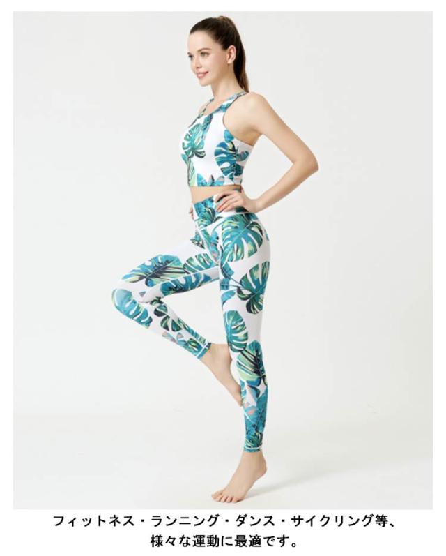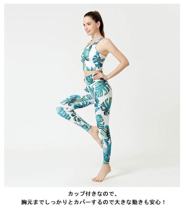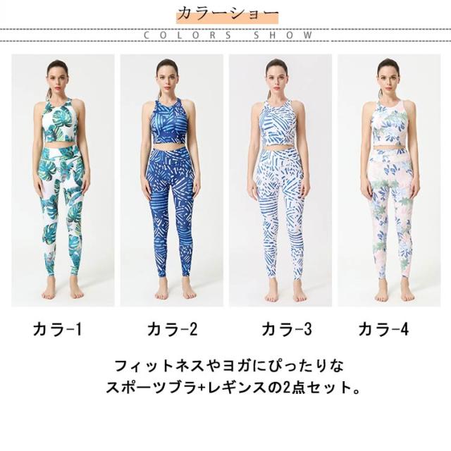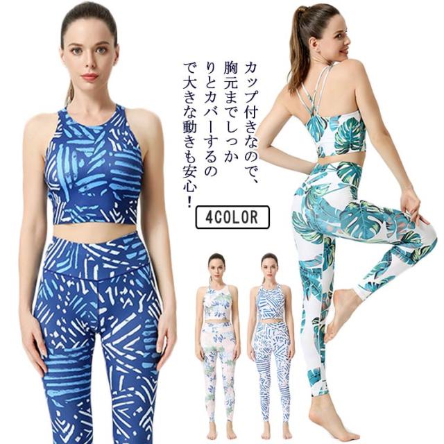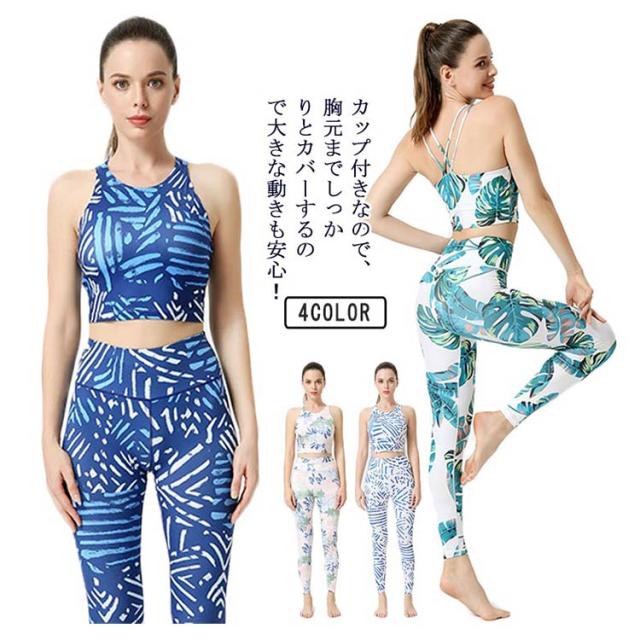 フィットネスウェア レディース ヨガウェア 上下セット スポーツブラ ヨガパンツ カップ付き レギンス 花柄 ハイウエスト お洒落 エアロビクス 吸汗速乾 送料無料