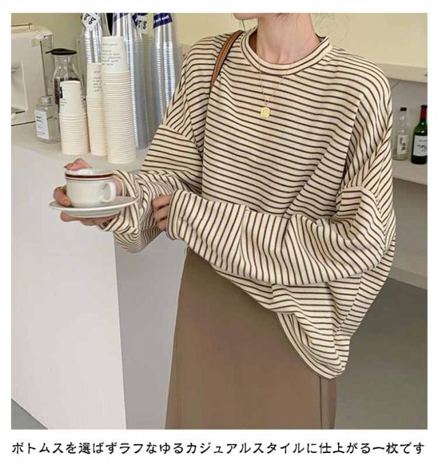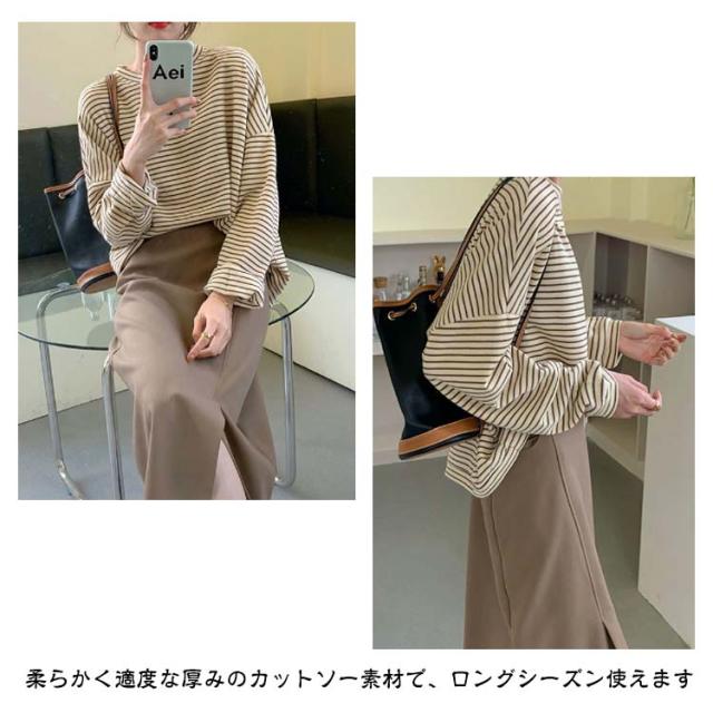 ロング Tシャツ 2023秋冬 ボーダー トップス レディース 長袖 ロング 大きいサイズ ボーダー カットソー カジュアル トップス ゆったり 韓国 クルーネック カジュアル ドルマン ゆったり 職場 仕事 学校 高校 大学生 秋 冬 おすすめ