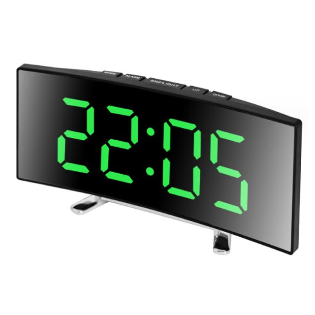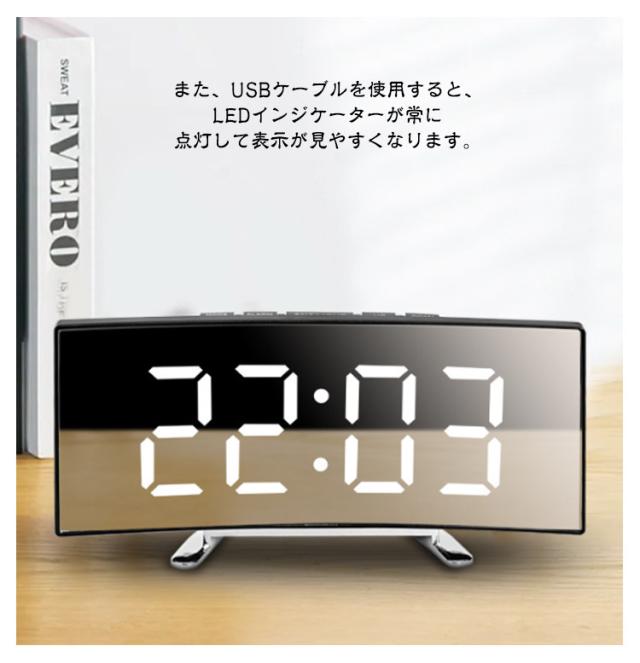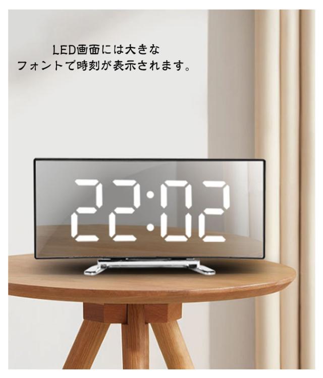 デジタル時計 目覚まし時計 ナイトモード 卓上 置き時計 卓上時計 LEDアラーム時計 デジタル表示 LED表示 USB給電 ミラー時計 スヌーズ機能 曲面パネル 曲面スクリーン 目覚まし時計 アラーム機能 日付表示 温度表示