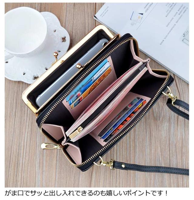 | スマートフォンやお札・小銭・カードがまとめて入れられるお財布ポシェット。 お財布にもショルダーにもなる2wayお財布ポシェット。 ちょっとした外出にこれ一つで出かけられて便利♪ がま口でサッと出し入れできるのも嬉しいポイントです! 無地×シンプルでどんな服にも合わせやすい。 お財布機能はもちろん、スマホもや小物も入る多機能ポシェットはとっても便利。 | |