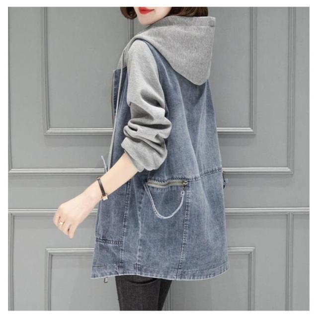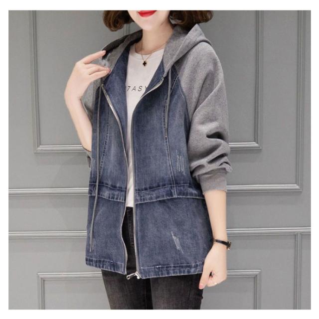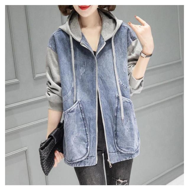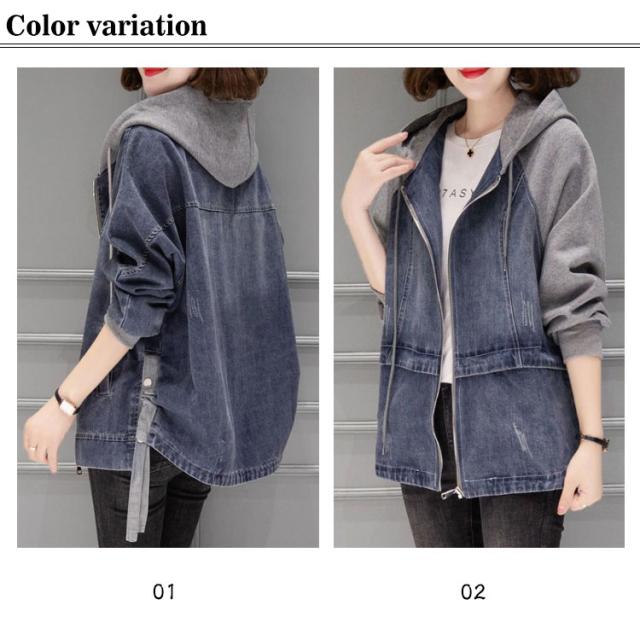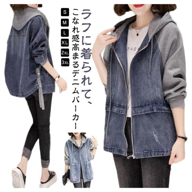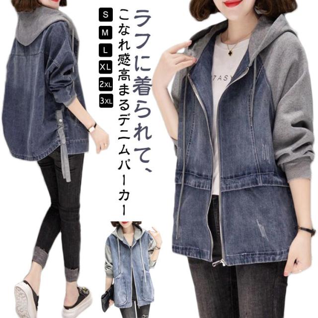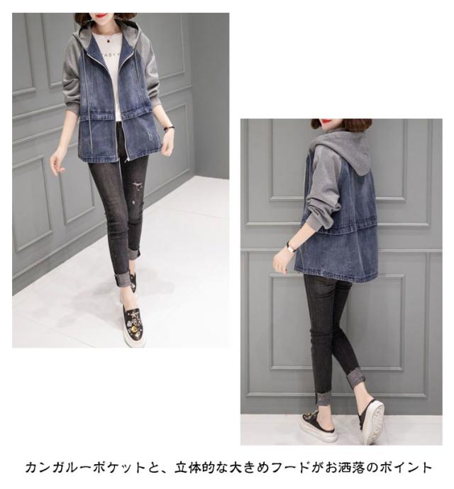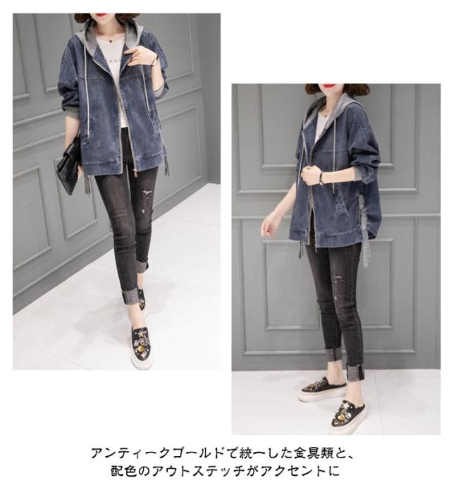 | ラフに着られて、こなれ感高まるデニムパーカー カンガルーポケットと、立体的な大きめフードがお洒落のポイント アンティークゴールドで統一した金具類と、配色のアウトステッチがアクセントに | |