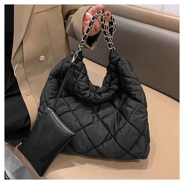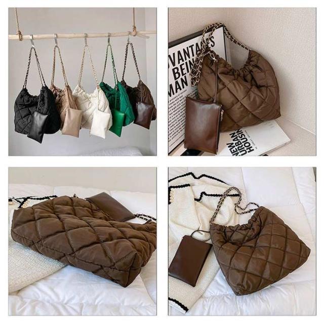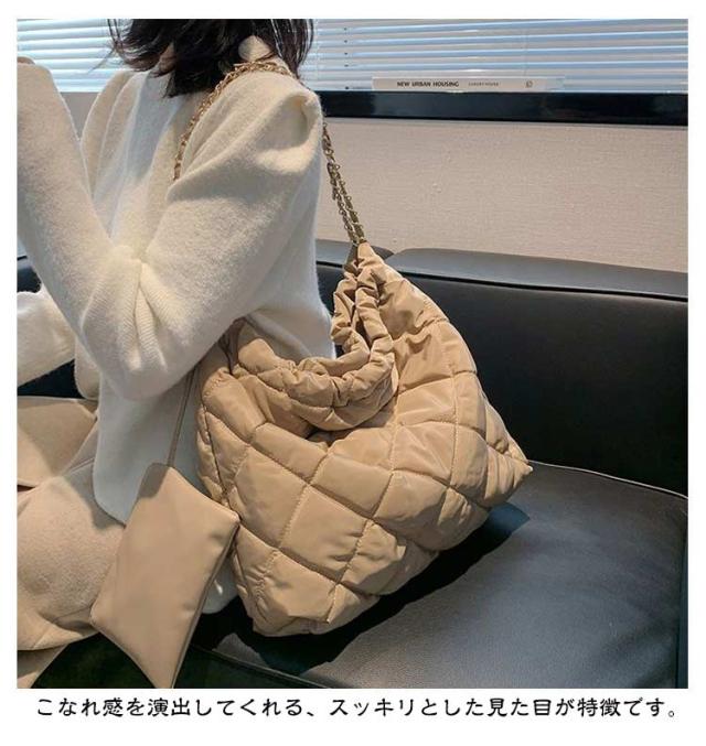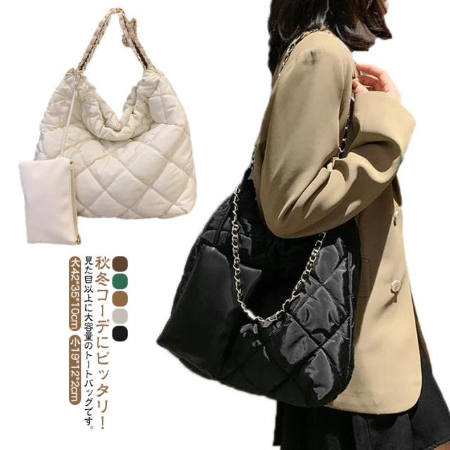 キルティング バッグ 大容量 ショルダーバッグ レディース トートバッグ ミニポーチ付き キルティングバッグ トート 韓国 肩掛け キレイめ 秋冬 チェーンバッグ お洒落 可愛い デート オフィス 通勤 通学 おしゃれ エレガント