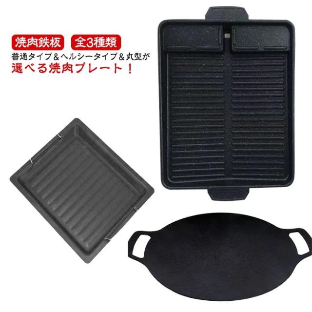 | 普通タイプ&ヘルシータイプ&丸型が選べる焼肉プレート! 調理後、そのまま食卓にプレートとしても高級感を引き出せます。 できたての温かいお料理で家族団らんの時間をお過ごしください。 焼きもの以外も、煮る、炒める、鍋料理などどんなお料理にも幅広くご使用いただけます! | |