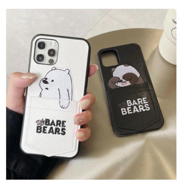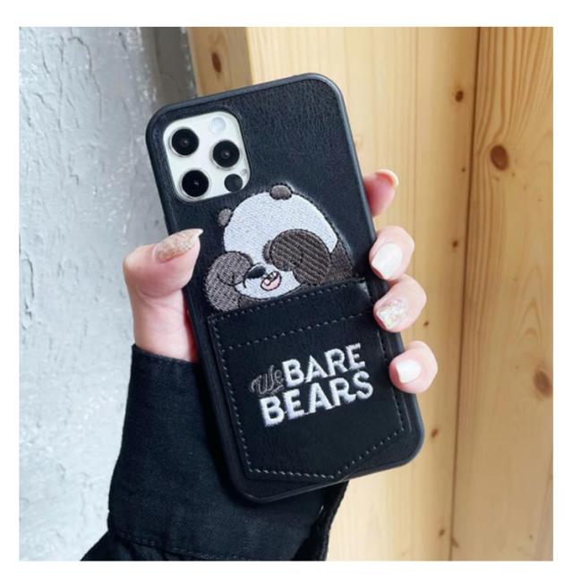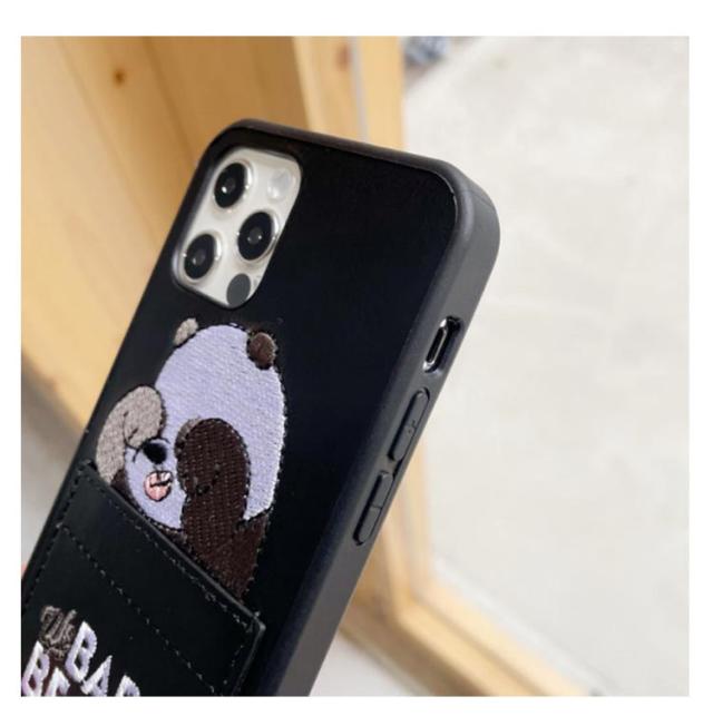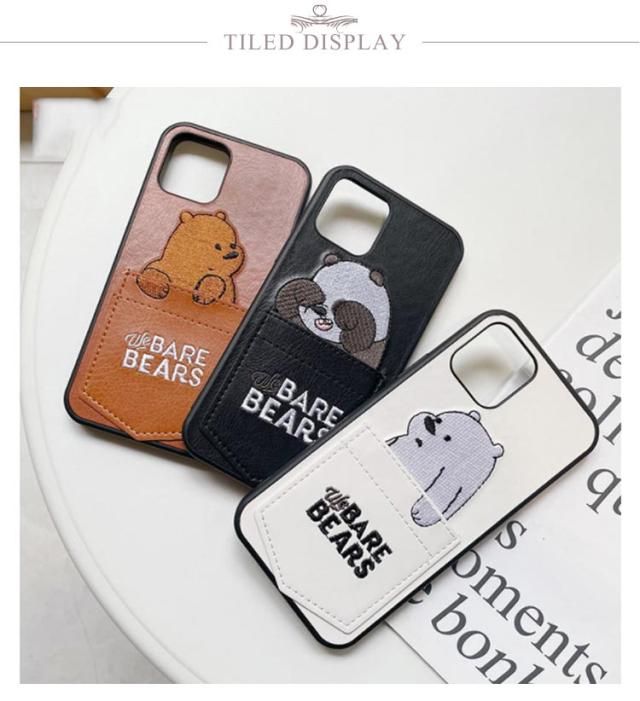 iphone15 ケース iphone14 韓国 かわいい おしゃれ iphone15pro ケース アイフォン15ケース iphone14pro iPhone15Promax アイフォンケース iPhone15plus アイフォン14ケース TPU カード収納 くま クマ パンダ 刺繍 背面カバー カード入れ レザー調 送料無料