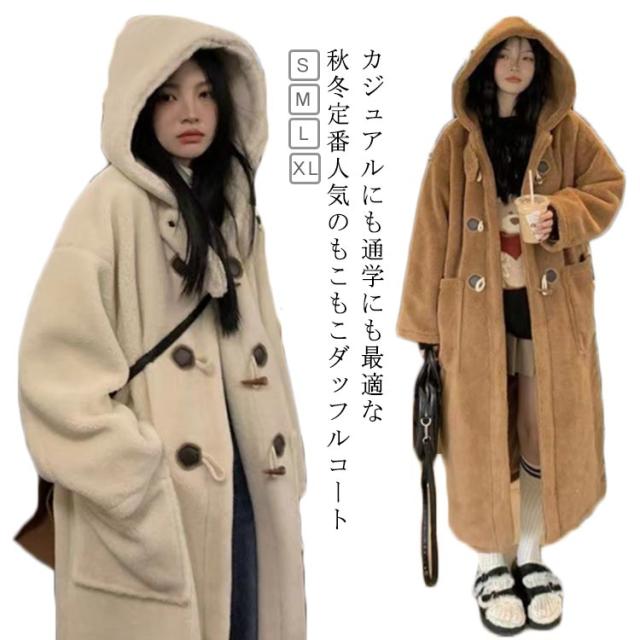 【送料無料】 制服 もこもこコート 女子 フード付き ロング コート 秋冬 中綿 スクールコート きれいめ アウター ダッフルコート おしゃれ あったか 保温 防寒 制服 通学 通勤 防風 学生 ダッフル レディース 無地 娘 彼女 可愛い 厚手