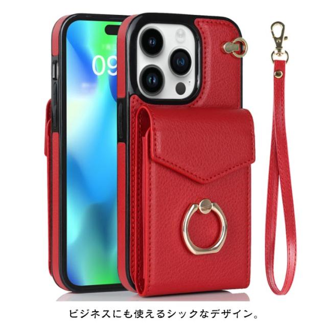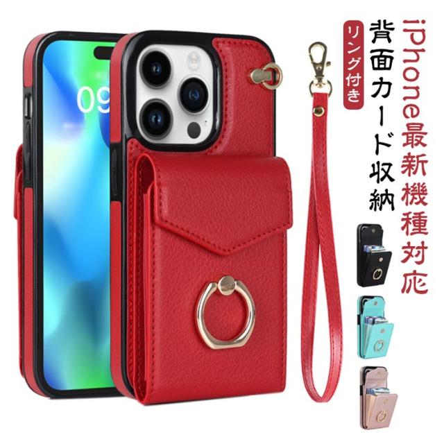 ストラップ付き iPhone15 ケース 背面収納 背面ポケット ケース カバー スマホケース 落下防止 リング付き スマホリング 背面 カード収納 カード入れ 背面 カードポケット iPhoneケース 送料無料